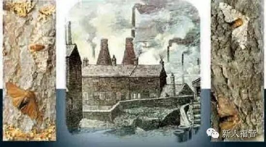 飞蛾的工业黑化现象:(a)在没有工业污染的地方,树干上的青苔使得白色的飞蛾比较容易生存;(b)在工业污染的地方,树干颜色发黑,黑色的飞蛾比较容易生存。