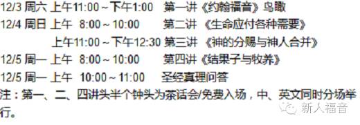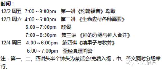 由美国南加西圣盖博谷众教会和福音机构“学者福音”联合举办的大型“圣经讲座”将于12月2日至4日在亚凯迪亚会所举行。本次“圣经讲座”的主题是揭开奥秘的《约翰福音 》。我们诚挚地邀请您全家和亲友参加这一年一度的圣经讲座。免费入场,中、英文同时分场举行。
