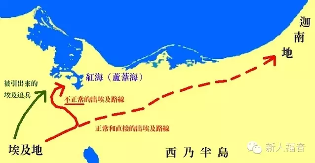 以色列人出埃及时,摩西并没有带领他们走近路,因为神说,“恐怕百姓遇见打仗后悔,就回埃及去。”(出十三17。)于是神领百姓绕道而行,走红海旷野的路。在民数记也记载,当时有以色列人说,“我们不如立一个首领,回埃及去罢。”(十四4。)所以,以色列人不仅要出埃及,更要过红海,因为神知道,倘若以色列人仅仅出埃及而不过红海,他们的得救就不稳定,他们还可能回到埃及;要从埃及得着彻底且完全的拯救,以色列人必须越过红海这道分别的界线。