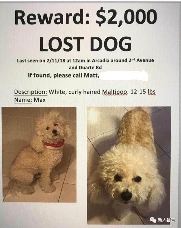 无独有偶,笔者邻居刚刚丢了爱犬,就贴出了这样的广告,悬赏两千美元: