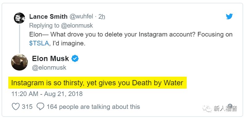 采访过了几日,马斯克就无预警地关了自己有八百万粉丝关注的instagram账号。诧异的网友在推特询问他关闭账号的原因,马斯克亲自的留言答复或许更多地体现了他自己的心声:
